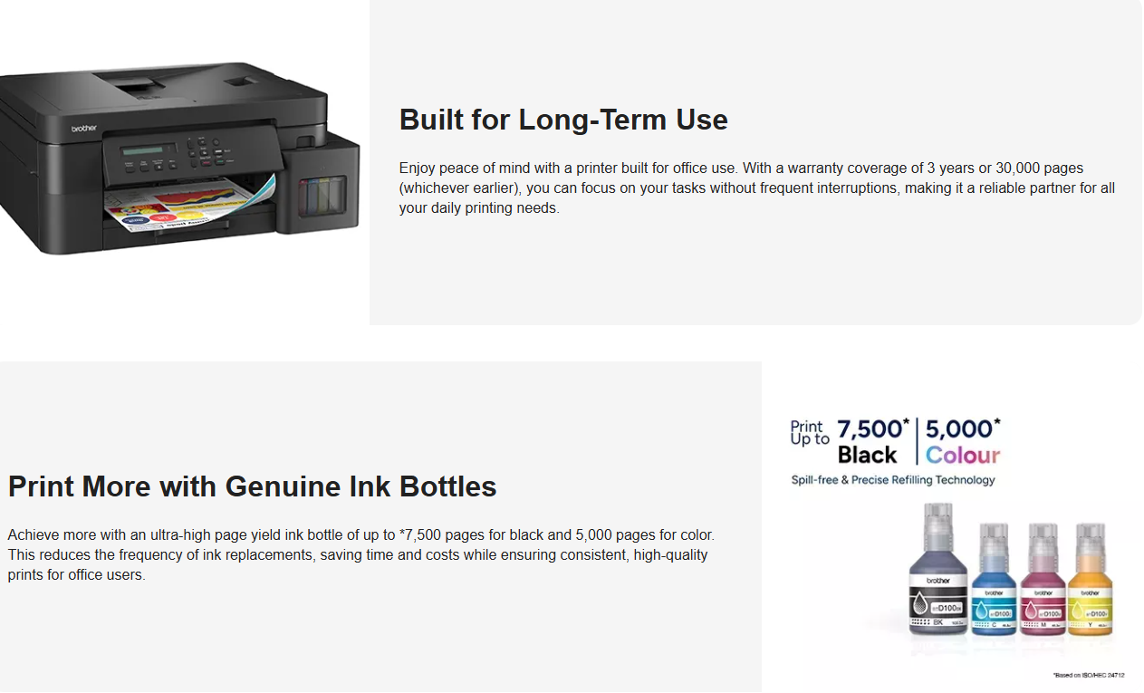 - Maximum Paper Capacity: Up to 230 sheets of 80 gsm plain paper (with Multi purpose Tray)
