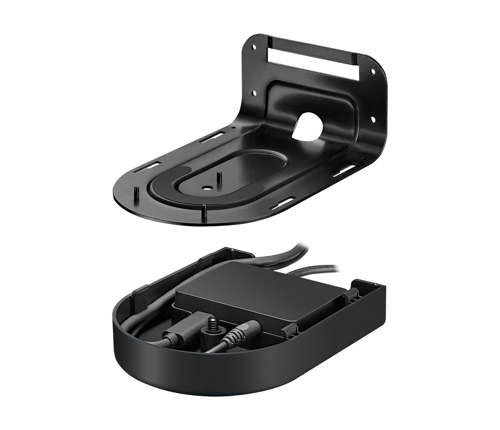 - Invertible wall mount with power splitter bay and cable management